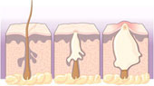 Eğer ciltte bulunan gözenekler, sebum ve ölü deri hücreleriyle dolar ve tıkanırsa bakteriler de üremek için fırsat bulur. Farklı büyüklükte ve sertlikte sivilceler oluşur. Oluşan cerahat içinde, sebum, ölü deri hücreleri ve bakteriler bulunur.