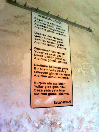 Edebiyatımızın usta kalemlerinden Sabahattin Ali de burada Türkiye Cumhuriyeti Cumhurbaşkanına hakaretten dolayı 5 ay yatmış. Aslında cezası 5 ay değilmiş, genel af çıkınca o da tahliye olmuş. Erkekler kısmındaki koğuşun birinde Sabahattin Ali’nin ünlü “Aldırma Gönül” şiiri duvarda asılı. İşte o koğuş Sabahattin Ali’nin o şiiri kaleme aldığı koğuşmuş. Tam olarak nerede olduğunu tarif edemem ama gezi güzergâhını takip ederseniz kolaylıkla o koğuşu bulabilirsiniz ve cezaevindeki bütün koğuşları gezmeyi ihmal etmeyin. Hepsi birbirine benzese de koğuşlara girdiğinizde hissettiğiniz duygularınız birbirine benzemeyebilir.